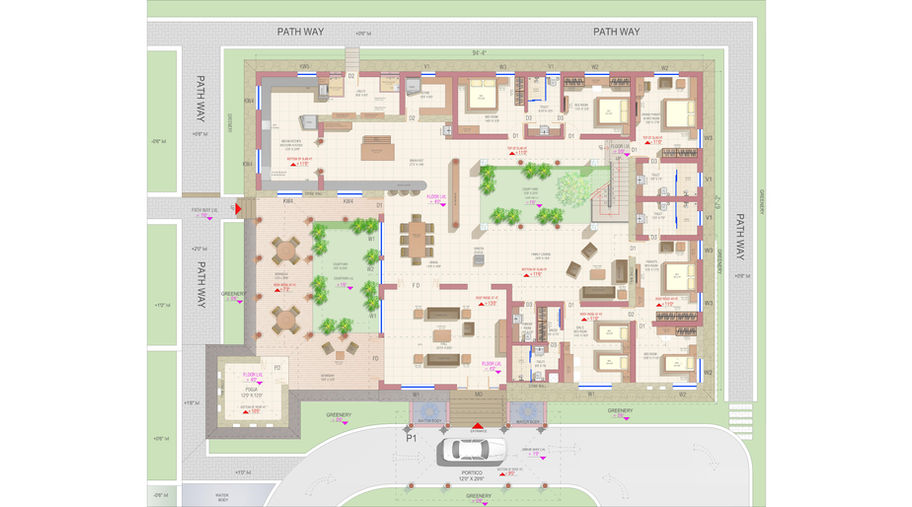 Inspired by traditional South Indian courtyard houses, the design is simple yet highly responsive to the region’s harsh climate, integrating courtyards and verandahs for natural cooling. Every room is oriented to offer picturesque farm views while adhering to Vastu principles.